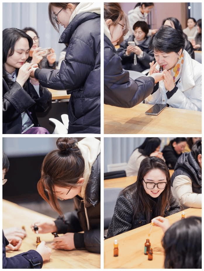 活动伊始,熊静老师从科学角度讲解了植物精油的提取方法及其在护肤和身心疗愈中的应用。她简要介绍了纯露的提取过程和精油的身心疗愈功效。并带领大家进行了舒缓嗅吸互动体验和DIY调配养肤精油。在调配过程中,熊老还耐心解答了大家的疑问,并分享了精油在日常生活中的多种应用方法。女教职工们不仅学到了精油的知识,还亲手制作了属于自己的专属精油,收获满满。