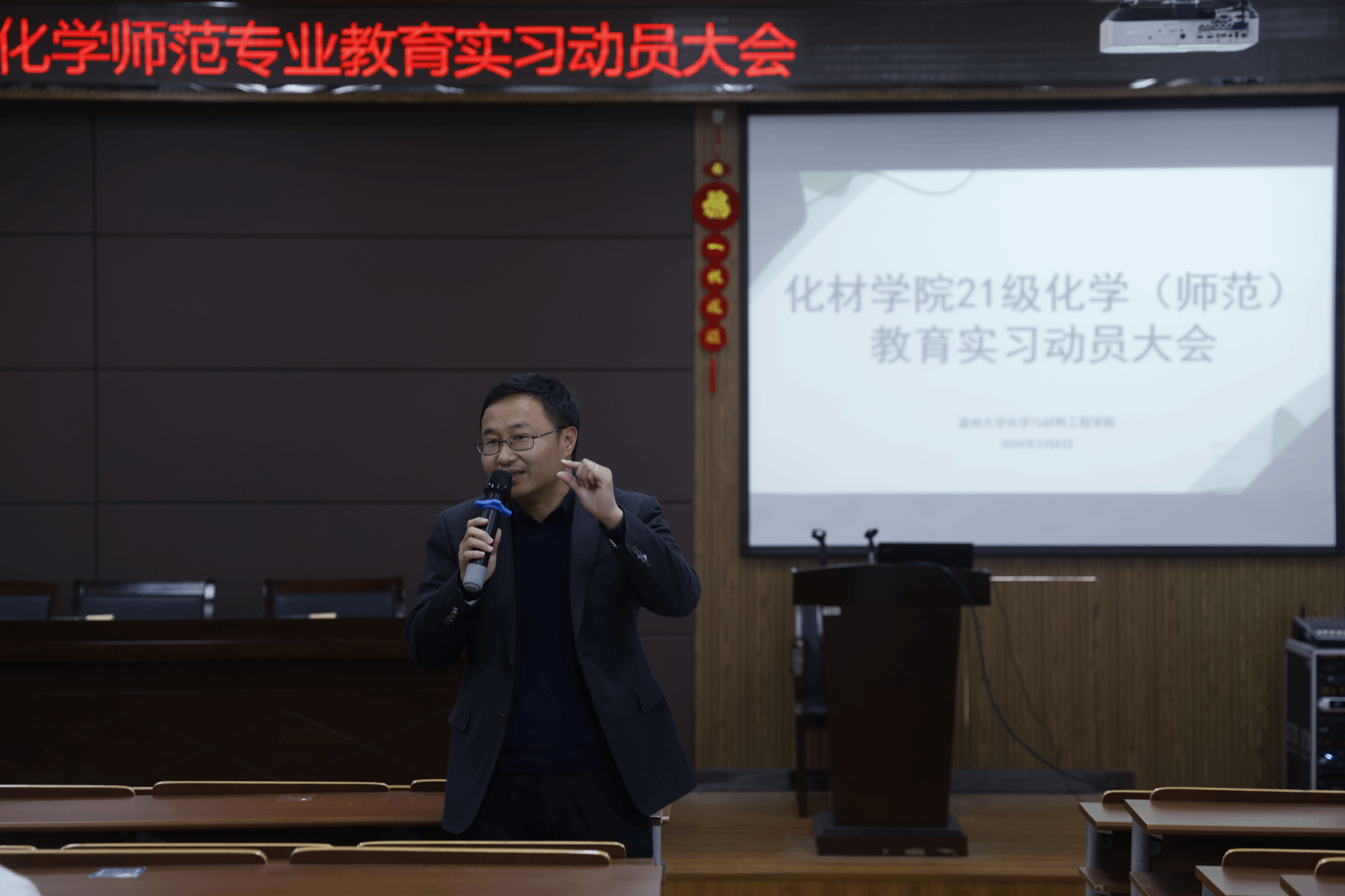 领导与教师出席。同时,特别邀请到温州市化学与材料学会化学教育分会理事、瑞安中学徐克老师,以及双屿中学林光第老师莅临,为大会带来专题讲座。21 级全体化学师范专业学生积极参与,大会由李国朋老师主持。