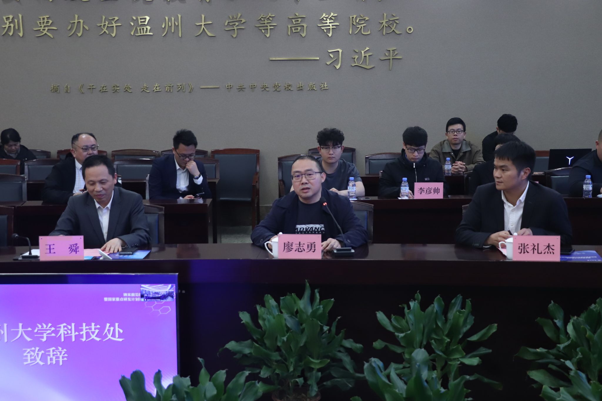 科技处处长廖志勇教授讲话,他向对长期关心支持黑料社