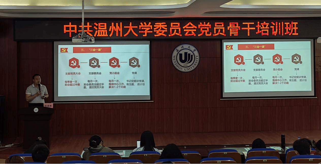 学工办主任邹涌彬老师紧扣《中国共产党支部工作条例(试行)》等党内法规,结合高校党建实际,深度解析组织生活的政治内涵与实践要求。包括“三会一课”质量提升路径、主题党日创新案例等实务要点,同时聚焦青年党员特点,分享“理论学习+实践服务”“红色资源沉浸式体验”等创新形式,为基层党组织提供 “听得懂、用得上”的操作指南。
