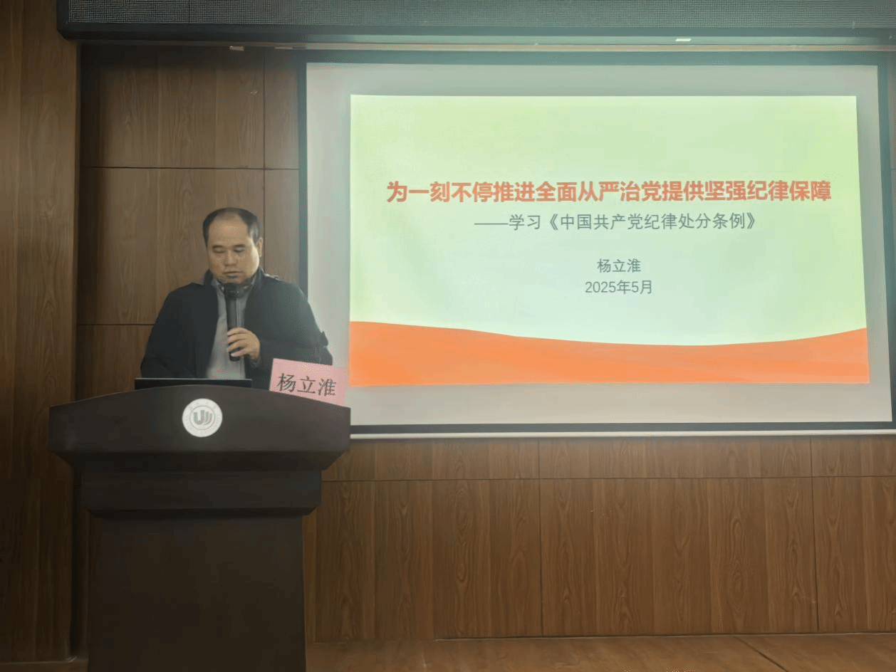 党委书记、分党校校长杨立淮老师以《为一刻不停推进全面从严治党提供坚强纪律保障——学习〈中国共产党纪律处分条例〉》为主题开展专题讲座。在讲座中系统阐释全面从严治党的政治逻辑、历史经验与高校落实路径。他结合高校党建典型案例,剖析当前基层党建“最后一公里”痛点,提出以严实标准抓好“关键少数”、以品牌建设激活“神经末梢”、以数字赋能提升监督效能。鼓励学生党员把严的基调贯穿党建与业务融合全过程,以高质量党建引领高校事业高质量发展,让“红色引擎”持续释放强劲动能。