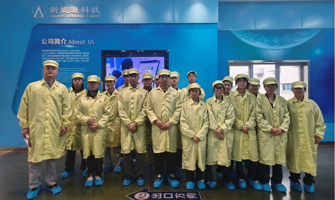 5月24日,赵世强和张杭老师带队走进宁德时代。宁德时代新能源科技股份有限公司是全球领先的动力电池系统提供商,深耕新能源汽车动力电池及储能系统领域,连续多年位居全球动力电池装机量榜首,其产品覆盖动力、储能、回收全产业链,技术实力与市场占有率均处于行业绝对领先地位。在智能化生产基地,前工序车间的电极涂布工序实现了浆料厚度误差几个微米的精准控制,辊压设备通过AI算法实时优化压力参数以提升极片一致性;后工序环节,全自动模组组装线采用视觉引导机器人完成电芯焊接,100%在线X光检测确保每颗电池的内部结构无瑕疵,质量是刻在每个工序里的细节。企业导师的细致讲解让同学们深刻理解到,从材料分子设计到系统集成创新,背后不仅是技术攻坚,更是对资源循环利用、全球气候治理的责任担当。看着高速运转却秩序井然的产线,同学们切实体会到“精益求精”的工匠精神对高端制造业的重要性。