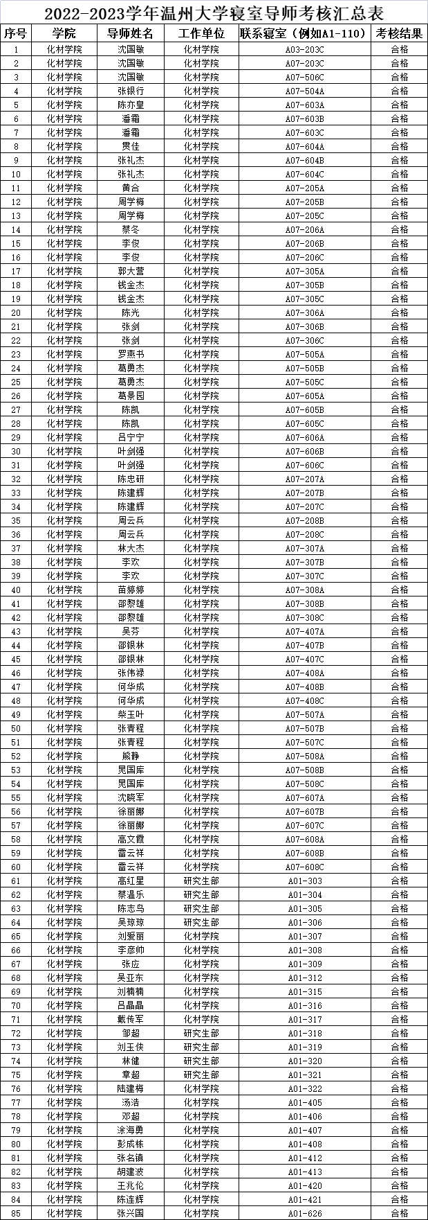 根据《黑料社 寝室导师制实施办法》,已对2022-2023学年寝室导师完成考核,先将考核结果公布如下:
