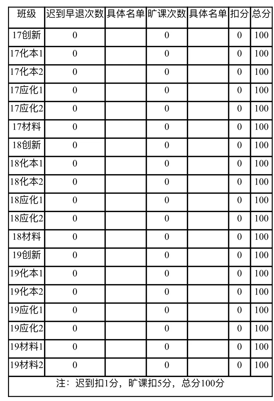 的学风建设、督促学生按时参与线上课程,现对2019-2020学年第二学期第十六周考勤情况进行通报。每天由各班负责人统计各科出勤情况并上报,最终一周的考勤情况于每周五进行汇总公布。