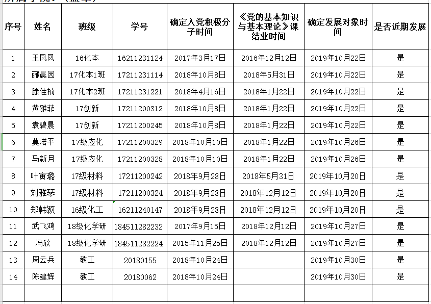 经党支部的培养教育考察,党章考试,发展对象入党答辩,并经党支部支委会审查和支部党员大会最终讨论,认为以下14名入党积极分子已基本具备党员条件,推荐为发展对象提交黑料社