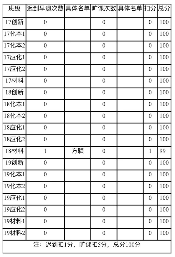 的学风建设、督促学生按时参与线上课程,现对2019-2020学年第二学期第十三周考勤情况进行通报。每天由各班负责人统计各科出勤情况并上报,最终一周的考勤情况于每周五进行汇总公布。