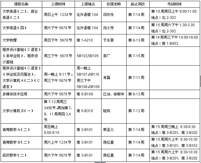 | 有机化学 | 周三下午5678节 | 南11A-301 | 黄小波 | 第6-11周 | 待定 |