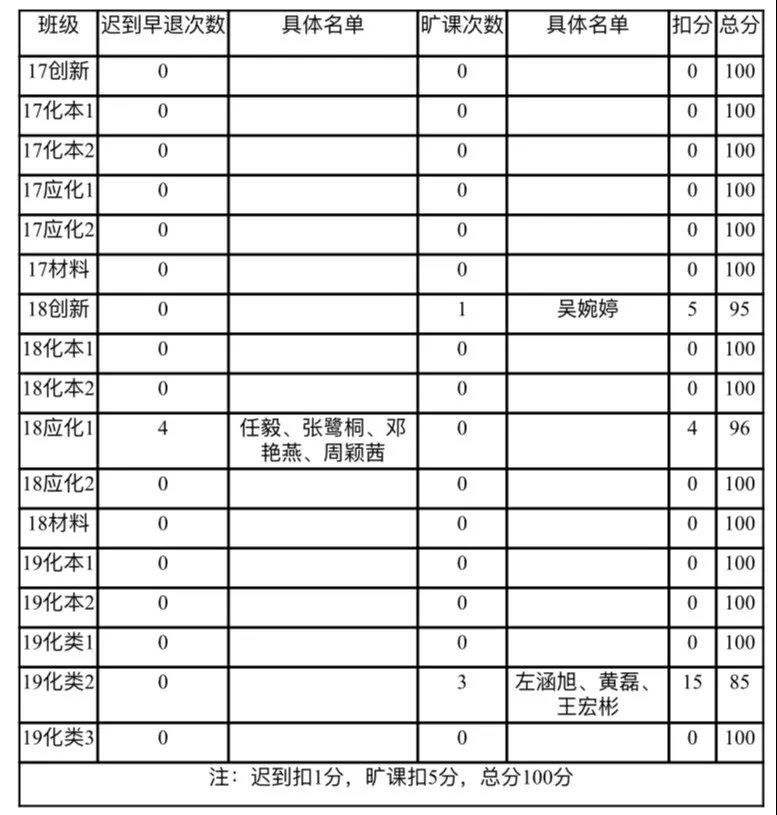 的学风建设、督促学生按时参与线上课程,现对2019-2020学年第二学期第十二周考勤情况进行通报。每天由各班负责人统计各科出勤情况并上报,最终一周的考勤情况于每周五进行汇总公布。