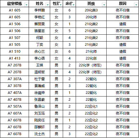 (2)若有学生在其他宿舍舍友可告知其返回核实;