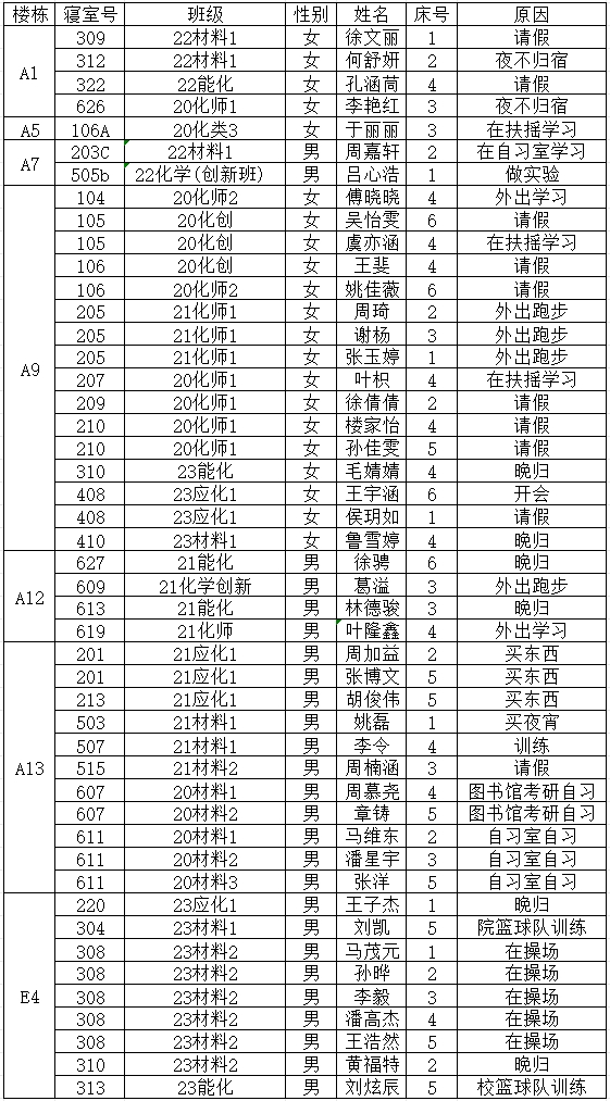 (2)若有学生在其他宿舍舍友可告知其返回核实;