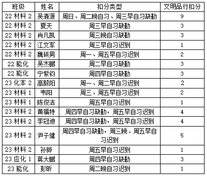 大一、大二早晚自习管理规定(201809修订)》,1次早、晚自习缺勤扣3分,学业发展部将在每周在“黑料社