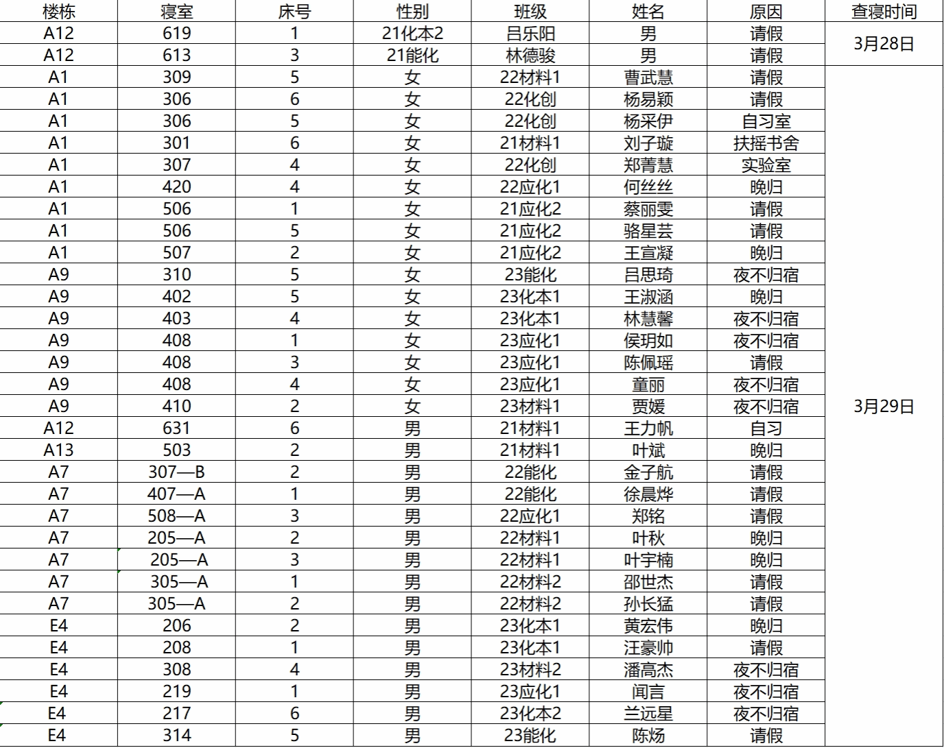 (2)若有学生在其他宿舍舍友可告知其返回核实;