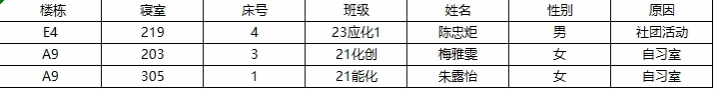 2.若在检查时间段内不在宿舍: