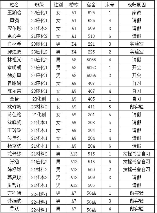 (2)若有学生在其他宿舍舍友可告知其返回核实;