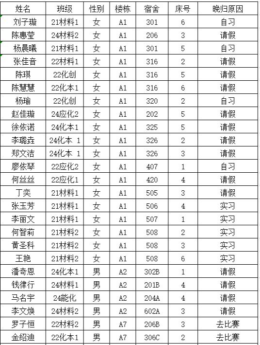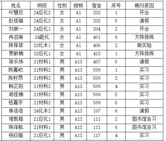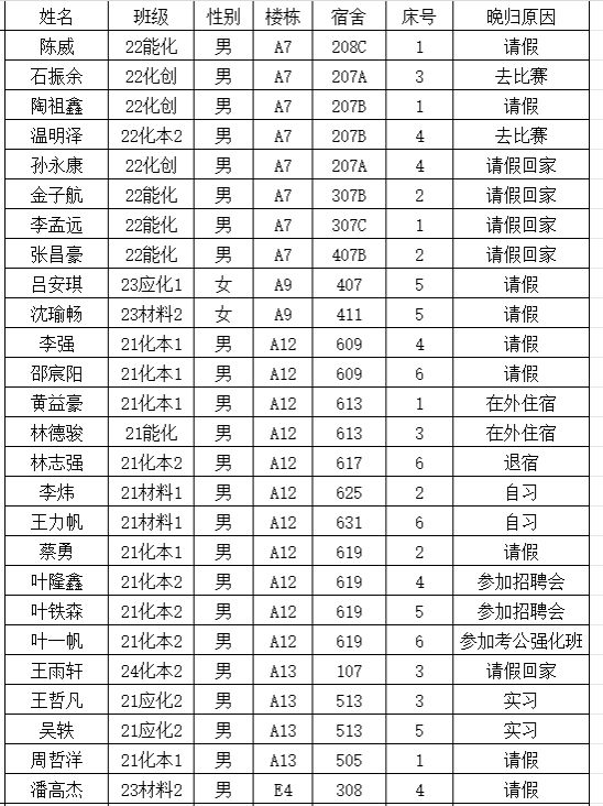 (2)若有学生在其他宿舍舍友可告知其返回核实;