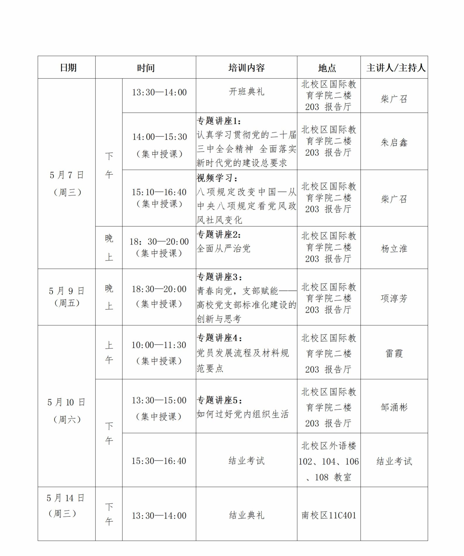 根据相关工作安排,现将本期学生党员骨干(南校联合)培训班有关工作通知如下: