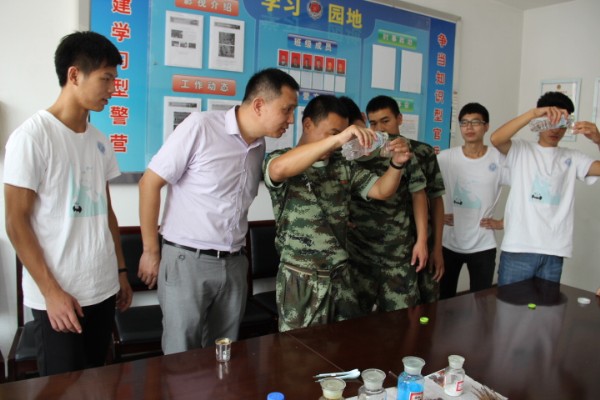 今天,前来慰问的领导给本次暑期社会实践带来了不少关心和支持,不仅积极参与了我们的活动,而且离去前还鼓励我们好好实践。在消防局的实践活动不仅加深了作为化学专业学生和消防官兵关于对方领域的知识了解,更可贵的是实践加深了实践队员们和消防官兵们之间的友谊。