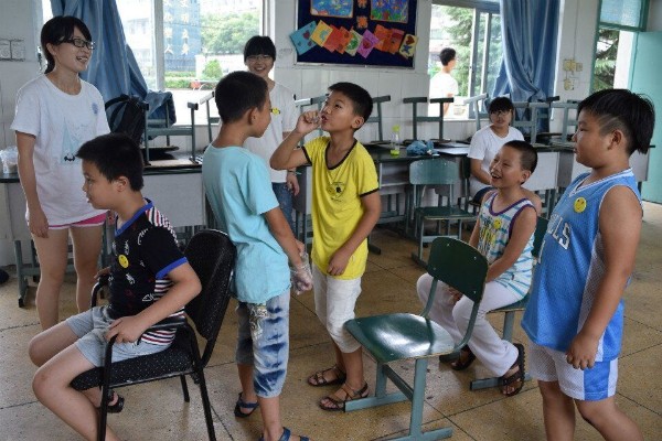 绿向导暑期社会实践队前往温州啸秋小学开展以“五水共治”为主题的护水知识宣传活动。