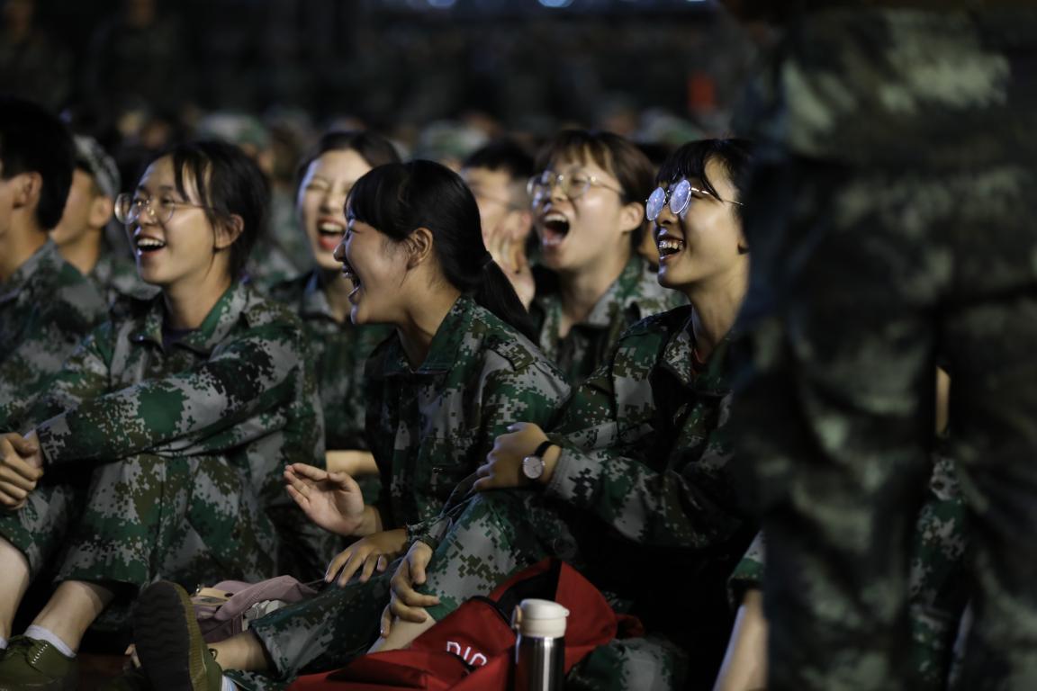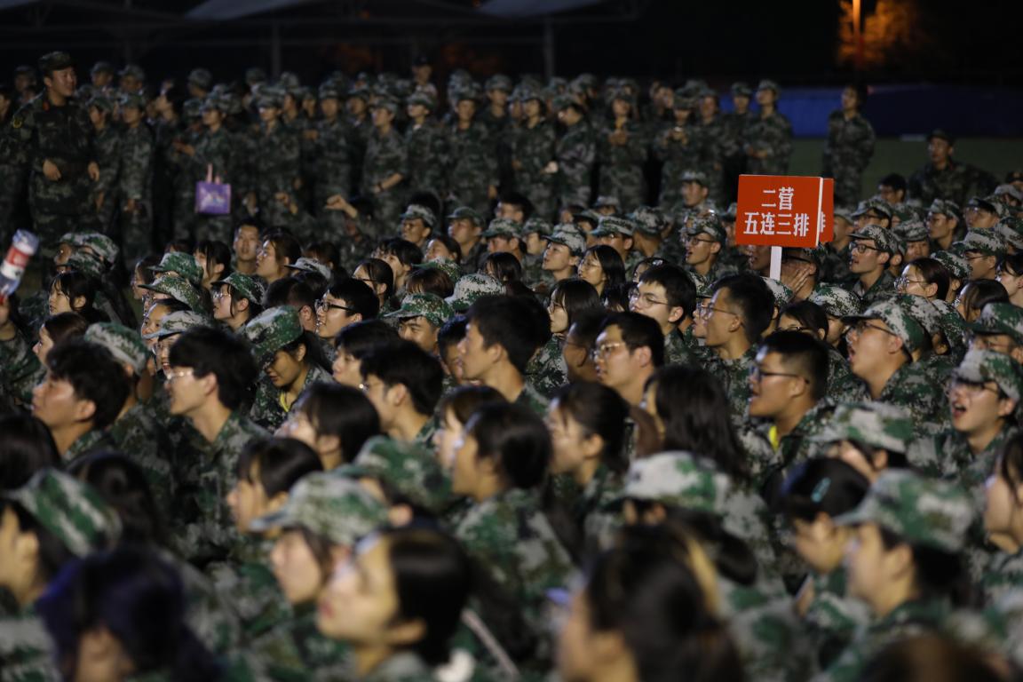 各个方阵的同学们还是以坚挺的军姿,坚决的意志,宣示了他们吃苦耐劳、坚持不懈的精神。军训不仅艰苦更有欢乐,与前几日不同,教官们随后让同学们盘腿而坐,开始了拉歌的学习和“实战演练”,为晚上的拉歌之战做准备。当听到同学们热情地学军歌,勇敢地放声歌唱时,内心都会被他们深深地触动。他们在一次次地挑战自己,拼尽全力争取做到最好,为校争光。