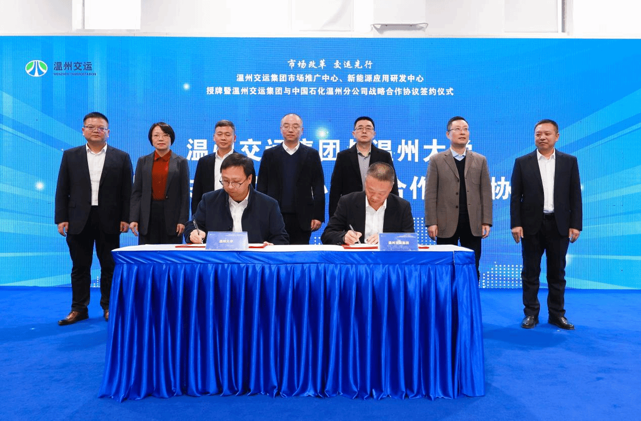 与温州交运集团签署战略合作协议。同时,新能源应用研发中心揭牌与启用仪式在温州交运集团活动室举行。