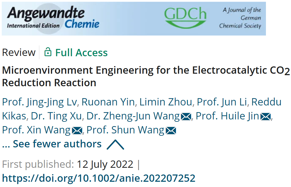 王舜教授课题组有关电化学还原二氧化碳的综述论文“Microenvironment Engineering for the Electrocatalytic CO2 Reduction Reaction”(微环境调控电化学还原CO2反应性能)。