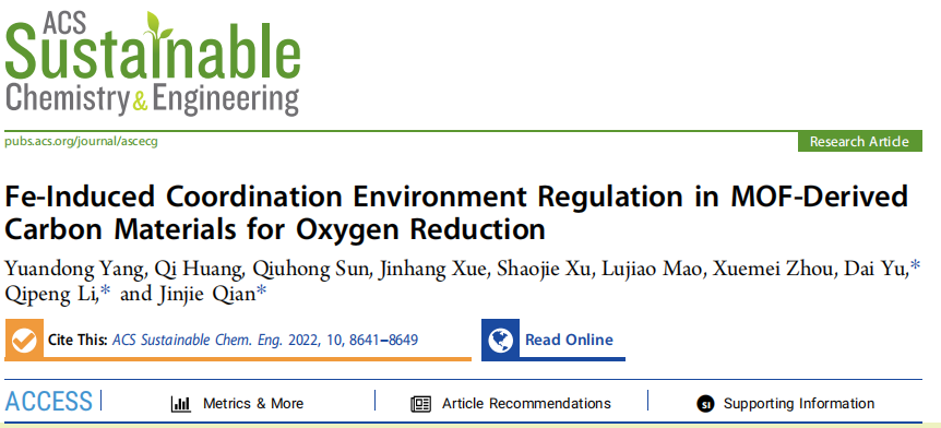 Yuandong Yang, et al. Fe-Induced Coordination Environment Regulation in MOF-Derived Carbon Materials for Oxygen Reduction.