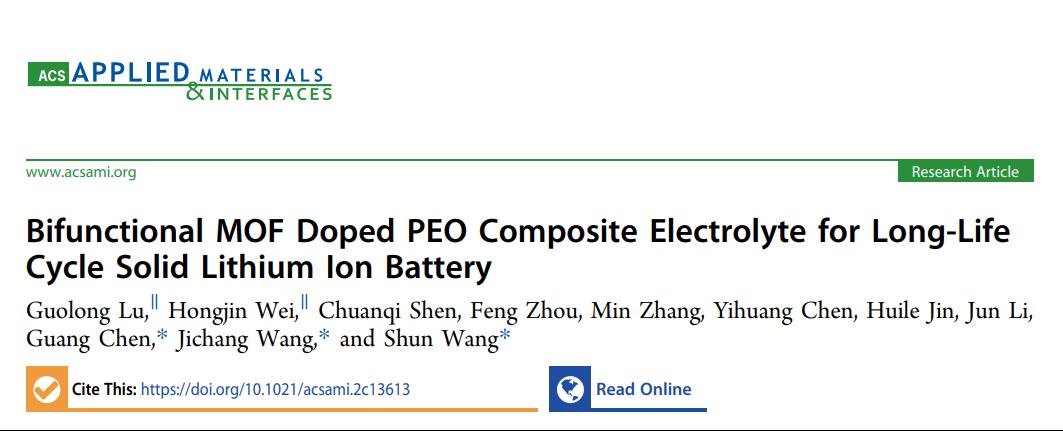 这一研究结果以“Bifunctional MOF Doped PEO Composite Electrolyte for Long-Life Cycle Solid Lithium Ion Battery”为题发表在国际权威期刊《ACS Applied Materials & Interfaces》(IF=10.383),黑料社