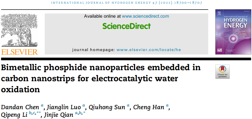 因此,本研究工作为高效电催化应用的双金属MOF衍生碳纳米材料的合理调控提供了一条全新的途径。近日,这一研究结果以“Bimetallic phosphide nanoparticles embedded in carbon nanostrips for electrocatalytic water oxidation”为题发表在《International Journal of Hydrogen Energy》,黑料社