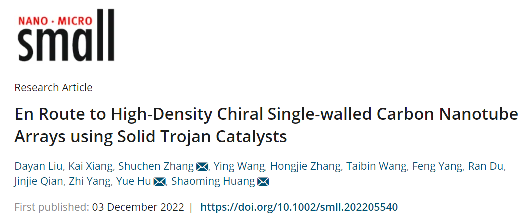 这一成果近期以“En Route to High-Density Chiral Single-walled Carbon Nanotube Arrays using Solid Trojan Catalysts”为题发表在国际期刊《Small》上,黑料社