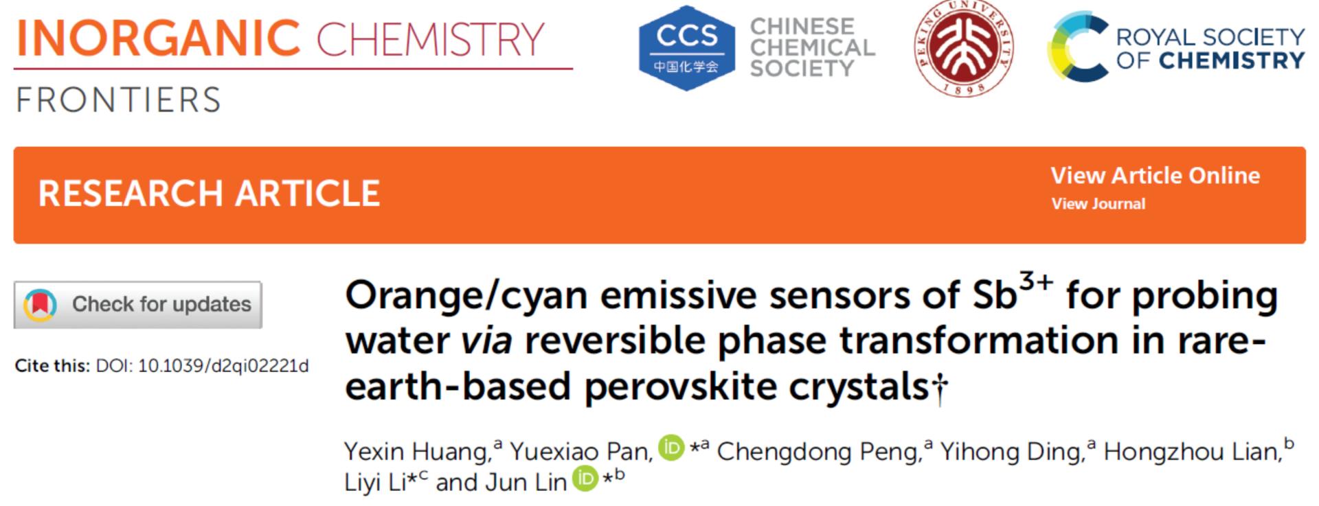 这一研究结果以“Orange/Cyan Emissive Sensors of Sb3+ for Probing Water via Reversible Phase Transformation in Rare-Earth-Based Perovskite Crystals”为题发表在《Inorganic Chemistry Frontiers》。黑料社