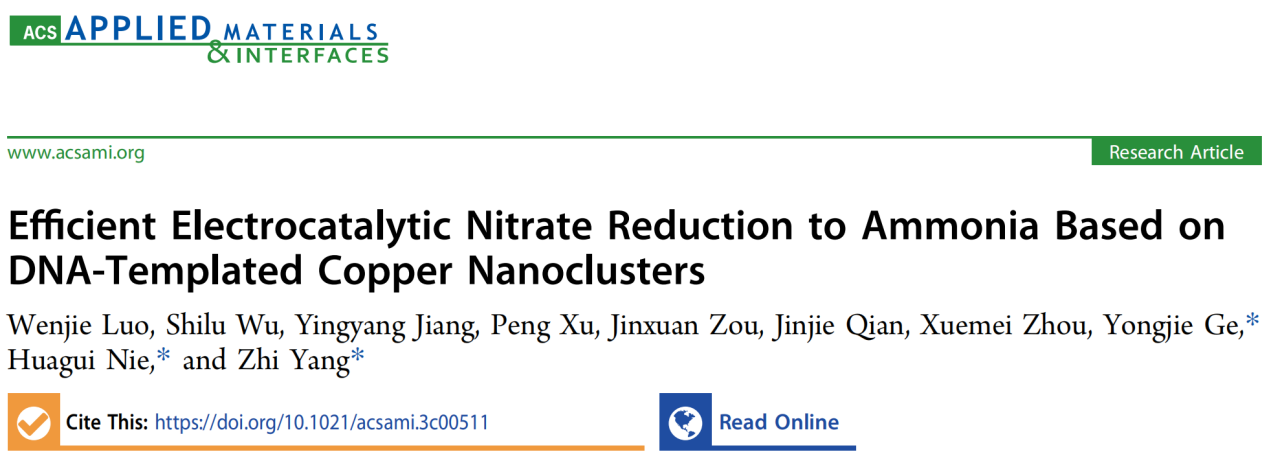 相关研究成果以《Efficient Electrocatalytic Nitrate Reduction to Ammonia Based on DNA-Templated Copper Nanoclusters》为题发表在国际著名期刊《ACS Applied Materials& Interfaces》(IF:10.383)上,黑料社