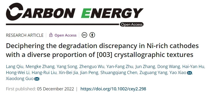 该成果以“Deciphering the degradation discrepancy in Ni-rich cathodes with the diverse proportion of [003] crystallographic texture”为题发表在高水平权威期刊Carbon Energy(IF: 21.556)上。黑料社