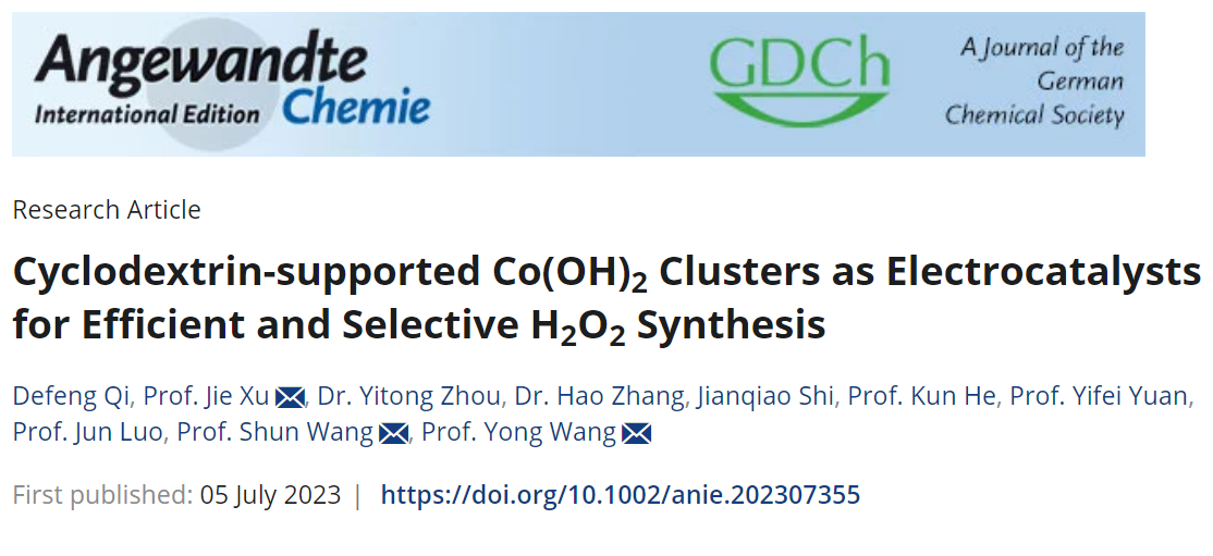 “Cyclodextrin-supported Co(OH)2 Clusters as Electrocatalysts for Efficient and Selective H2O2 Synthesis” //onlinelibrary.wiley.com/doi/10.1002/anie.202307355.