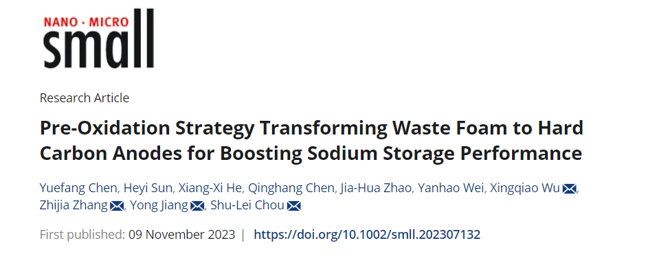 该研究以题目为“Pre-oxidation Strategy Transforming Waste Foam to Hard Carbon Anodes for Boosting Sodium Storage Performance”的论文发表在材料领域国际顶级期刊《Small》。黑料社
