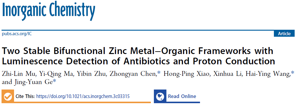 相关研究成果以“Two Stable Bifunctional Zinc Metal-Organic Frameworks with Luminescence Detection of Antibiotics and Proton Conduction”为题,近日发表在《Inorganic Chemistry》期刊上,黑料社