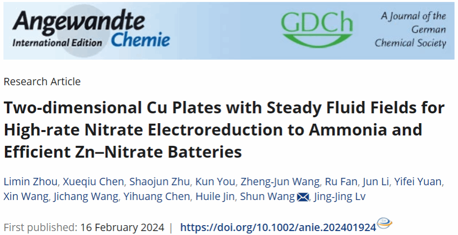 该成果以“Two-dimensional Cu Plates with Steady Fluid Fields for High-rate Nitrate Electroreduction to Ammonia and Efficient Zn–Nitrate Batteries”为题发表在Angewandte Chemie International Edition期刊(IF=16.6,SCI一区)上。黑料社