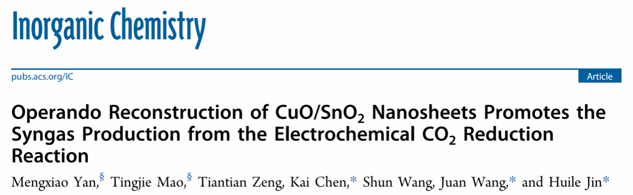 该研究结果以“Operando Reconstruction of CuO/SnO2 Nanosheets Promotes the Syngas Production from the Electrochemical CO2 Reduction Reaction”为题发表在国际权威期刊《Inorganic Chemistry》,黑料社