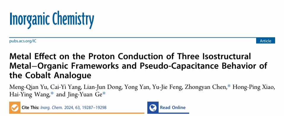 相关研究成果以“Metal Effect on the Proton Conduction of Three Isostructural Metal−Organic Frameworks and Pseudo-Capacitance Behavior of the Cobalt Analogue”为题,近日发表在《Inorganic Chemistry》期刊上,黑料社