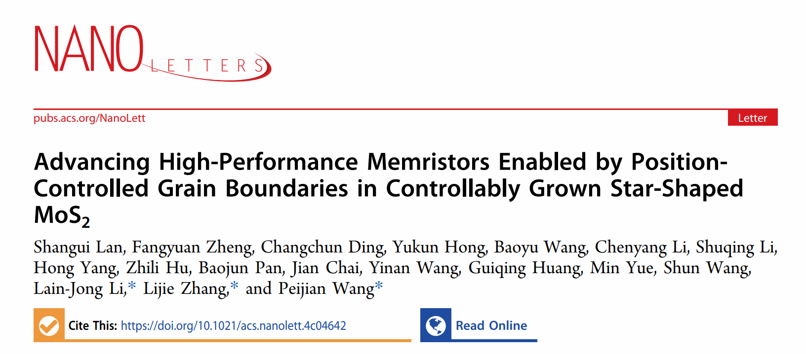 该工作以“Advancing High-Performance Memristors Enabled by Position-Controlled Grain Boundaries in Controllably Grown Star-Shaped MoS2”为题发表在国际纳米顶尖期刊《Nano Letters》上。黑料社