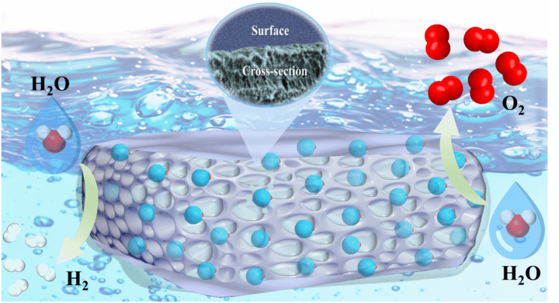水电解作为一种工业制氢技术,提供了一种碳中和的氢气生产过程,能够与风能、太阳能等可再生能源无缝集成。在众多电解技术中,阴离子交换膜水电解(AEMWE)因其能够使用非贵金属催化剂、降低资本成本以及提供更好的气体阻隔性能而脱颖而出。然而,大多数阴离子交换膜(AEMs)的长期稳定性仍是一个重大挑战,这主要是因为它们依赖于固定的阳离子基团进行OH⁻离子传导,而这些基团在高碱性环境下容易发生降解。为了推进高性能和耐用的碱性电解槽,开发具有高碱性稳定性和强离子传导性的聚合物电解质膜至关重要。离子溶剂化膜 (ISM) 作为一种替代方法,为当前电解技术面临的局限性提供了潜在的解决方案。在各种ISMs中,以弱碱聚苯并咪唑(PBI)膜尤为引人注目,因为它们出色的化学稳定性和机械强度。传统上,基于 PBI 的膜是使用有机溶剂浇铸法制备的。然而,在铸造和溶剂蒸发过程中,由于强分子间相互作用(例如 π-π 堆叠和氢键),聚合物链往往会密集堆积,从而形成致密、无孔的结构。这种致密的结构严重限制了膜的自由体积,阻碍了离子化位点与碱性溶液之间的有效接触,最终导致 KOH 吸收降低和离子传导不足。