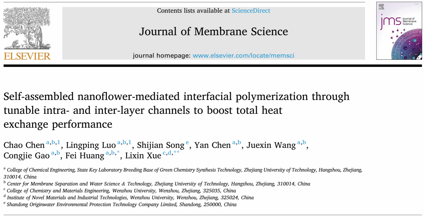 本研究为探索具有可定制层内和层间通道的纯有机纳米填料用于构建高效能量回收全热交换膜(THEMs)开辟了新途径,并具有卓越的气体阻隔能力与热交换效率。相应成果以“Self-Assembled Nanoflower-Mediated Interfacial Polymerization through Tunable Intra- and Inter-layer Channels to Boost Total Heat Exchange Performance”为题发表在膜领域权威期刊《Journal of Membrane Science》上。