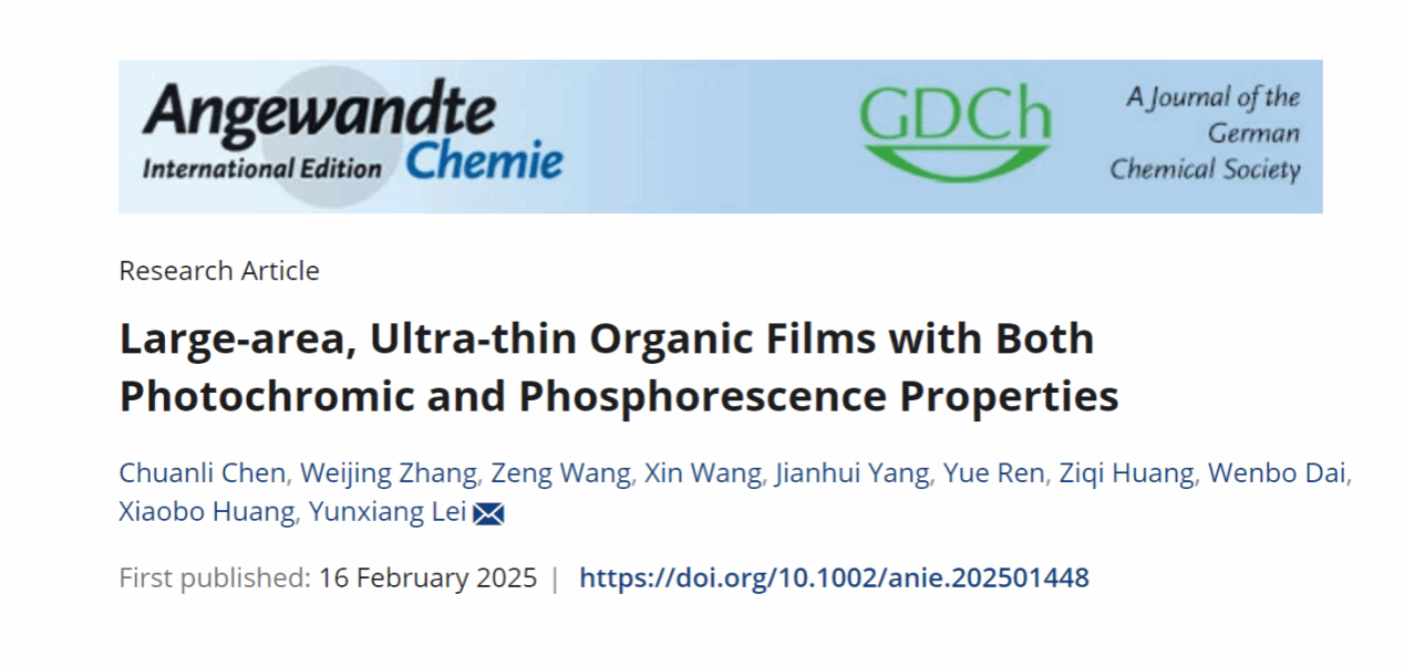 该论文以“Large-area, Ultra-thin Organic Films with Both Photochromic and Phosphorescence Properties”为题发表于国际顶级期刊⟪Angew. Chem. Int. Ed.⟫上。黑料社