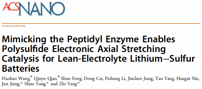 该工作以“Mimicking the Peptidyl Enzyme Enables Polysulfide Electronic Axial Stretching Catalysis for Lean-Electrolyte Lithium-Sulfur Batteries”为题发表于国际顶级期刊《ACS Nano》(IF=16.0)。黑料社