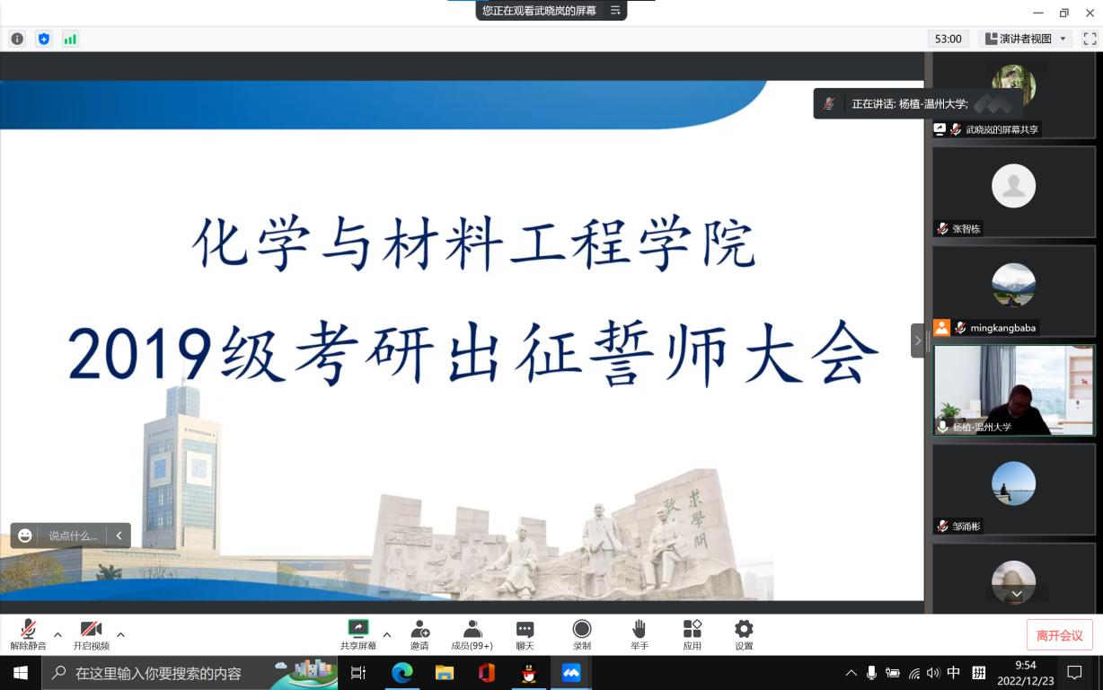 先是由2019级班主任发言,今年与往年不同,受疫情影响,部分考研学生感染上新冠,老师们希望学生以平常心对待,按照自己以往的节奏答卷,不要有太大的压力。