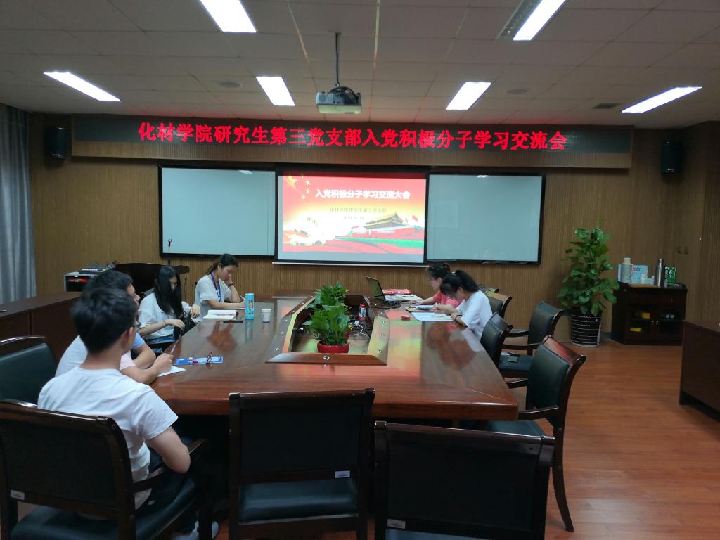 楼11B-204召开了2018-2019学年第二学期入党积极分子学习交流大会。本次会议由支部书记贾雅君同志主持,研究生第三党支部支委及全体入党积极分子参加了本次会议。