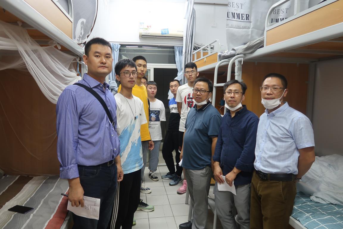 帐篷集合后,分成五支队伍去2020级新生寝室走访。