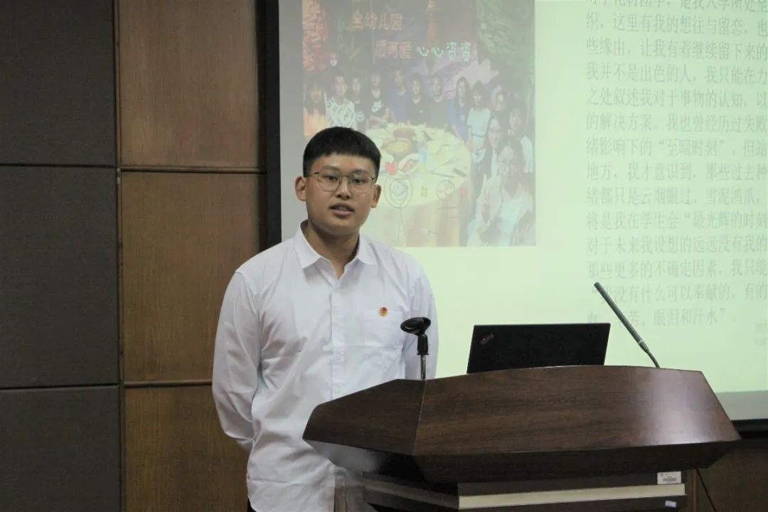 各年级的学生展开招募基础上,以各位同学进行讲演、评选老师与学生会主席进行提问的方式,从44位有意向的同学中,选举产生下一届主席团与学生院长成员以及学生会全部共十个部门的主任。学生进行讲演,内容包括个人展示、工作经验的介绍以及竞选成功后对未来工作的设想,之后由老师与主席团们就针对各方面细节进行提问,由竞选者根据自己的理解展开回答。在完成竞选后的讨论中,老师同主席团对各位参选同学的信息进行进一步的统计与评价,确定了最终的名单,并将于今日开始公示。