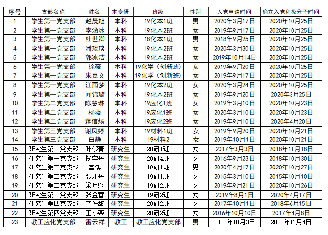 经本人申请,党组织一年以上的培养教育和考察,各支部于近期组织发展对象公开答辩,并征求党员、群众和培养联系人意见,召开支委会讨论研究,拟确定赵晨旭等23名入党积极分子为发展对象。黑料社