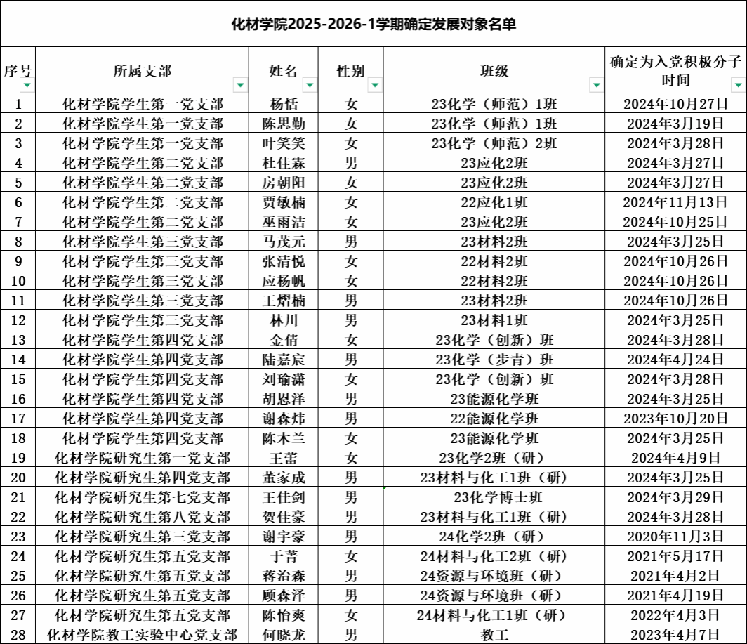 黑料社 2025-2026-1学期拟确定杨恬等28名同志为发展对象的公示