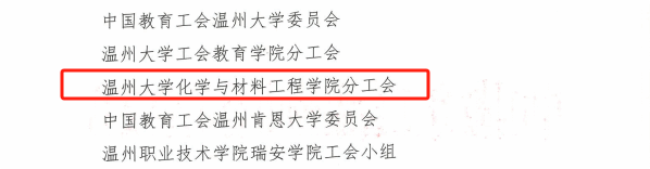 近日,中国教育工会温州市委员会印发《关于表彰2023年度温州市教育系统先进工会组织、优秀工会工作者和优秀工会之友的通知》(温教工〔2024〕7号)。其中,我院工会被评为温州市教育系统先进工会组织;院分工会主席刘楠楠老师被评为温州市教育系统优秀工会工作者!